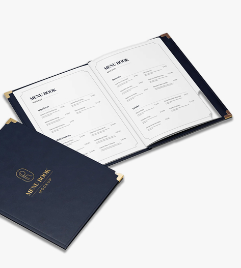 A restaurant menu book provides a durable, organized, and polished presentation, making it easier for customers to explore, while a menu sheet offers a simpler, more basic option.