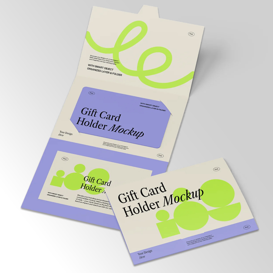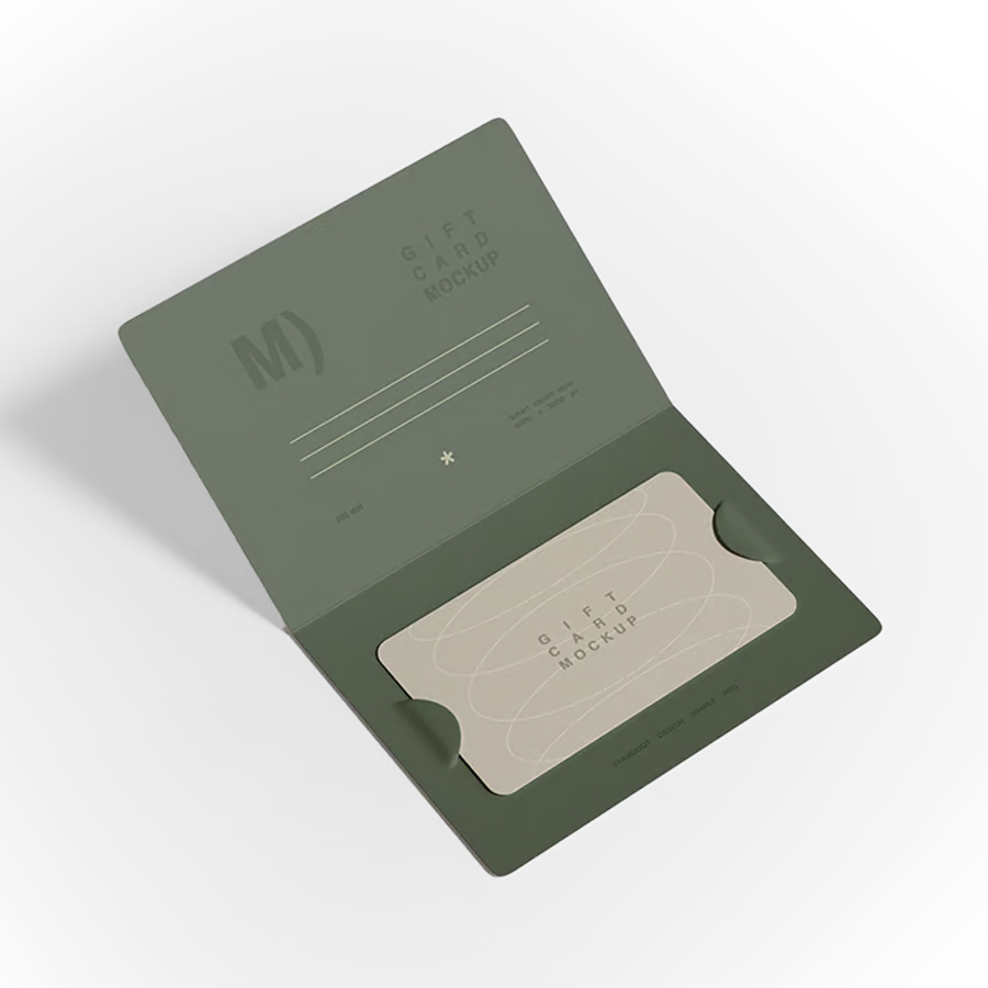 Custom gift card holder design with your branding and premium finish options. Perfect for retail stores and service businesses looking to enhance gift presentation.